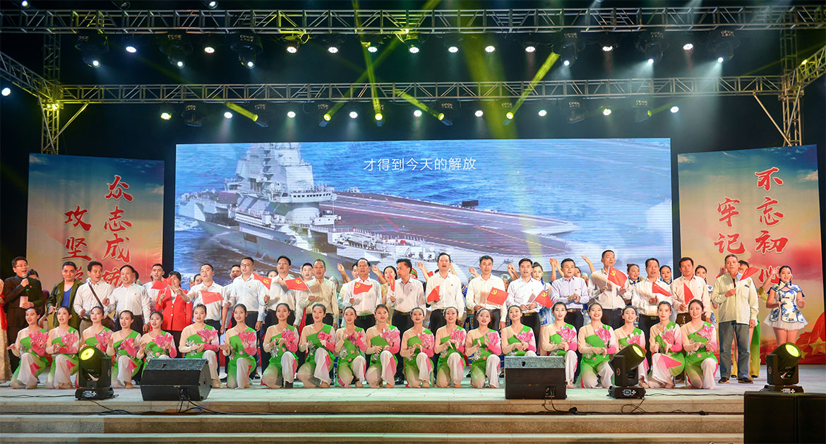 晚會(huì)在涯歌《涯在水鄉(xiāng)等你來》中精彩啟幕,圍繞“不忘初心、牢記使命”主題教育,三個(gè)鎮(zhèn)精心編排的12個(gè)各具地方特色的節(jié)目輪流上演,緊扣“不忘初心、牢記使命”主題教育,謳歌三鎮(zhèn)在各級(jí)黨委政府的領(lǐng)導(dǎo)下取得的光輝業(yè)績,體現(xiàn)了三鎮(zhèn)開展“不忘初心、牢記使命”主題教育工作,表達(dá)了對(duì)黨的無比熱愛,對(duì)偉大祖國的深情祝福。晚會(huì)最后在全體人員一起高歌《歌唱祖國》的歌聲中落下帷幕。