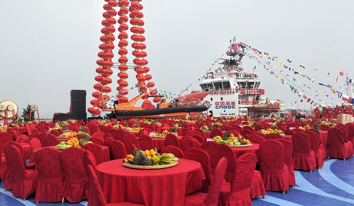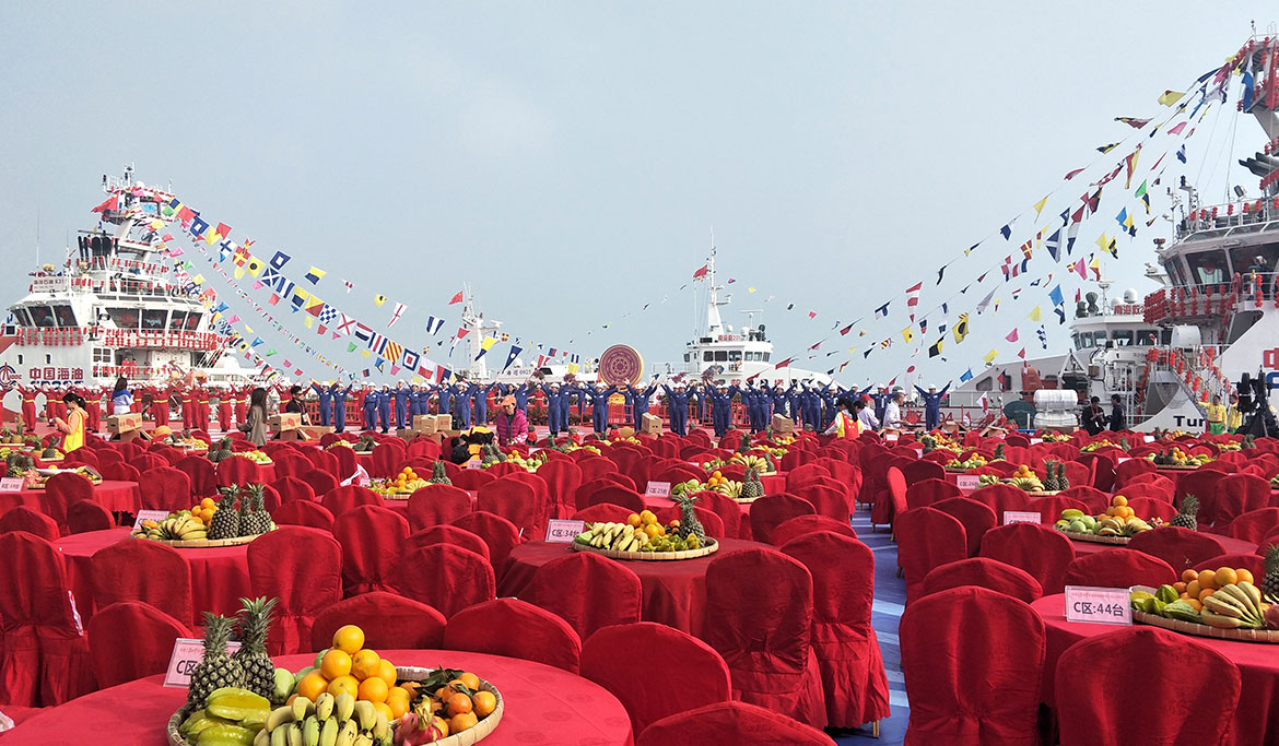 大紅燈籠高高掛,東西南北賀新春主題造型……會(huì)場年味十足!此次會(huì)場的最大亮點(diǎn)就是舞臺搭建,陸地與輪船相結(jié)合,大海為背景,完全體現(xiàn)了南國之風(fēng)的特點(diǎn)。