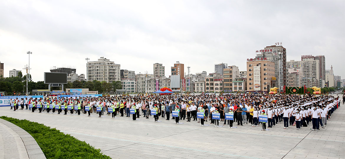 廉江市委常委、宣傳部長、市創(chuàng)建全國文明城市工作指揮部執(zhí)行副總指揮兼市創(chuàng)文辦主任關(guān)維榮,市人大常委會副主任、市總工會主席、市創(chuàng)建全國文明城市工作指揮部執(zhí)行副總指揮李玲,副市長、市公安局長韓靖,市政協(xié)副主席、市創(chuàng)建全國文明城市工作指揮部執(zhí)行副總指揮林炳坤,以及市直副科以上單位代表,街道代表,市公安局交通警察大隊領(lǐng)導(dǎo)和城區(qū)中隊全體干警輔警,快遞、美團、餓了么等行業(yè)代表,學(xué)校師生及家長代表,志愿者、社工代表和新聞媒體記者共1600多人參加了此次活動。