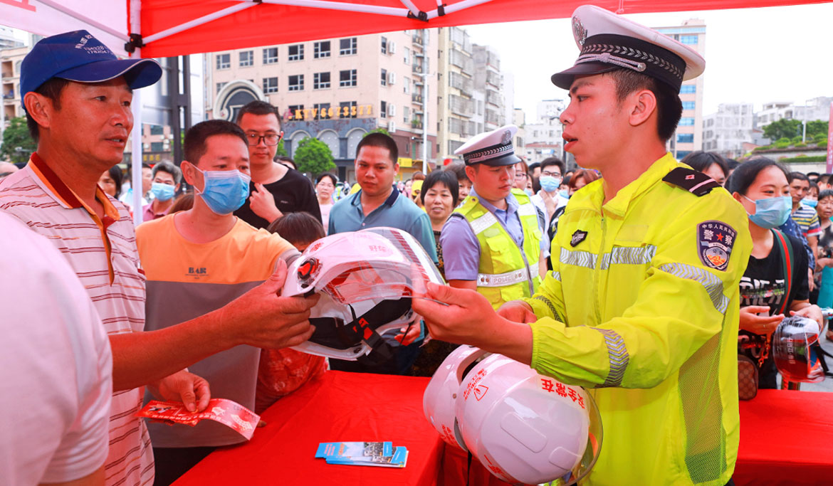 活動結(jié)束后,參與活動的相關(guān)人員紛紛在簽名墻上簽名并參觀“文明交通”宣傳展板,交警為市民群眾免費發(fā)放“愛心頭盔”共800個。