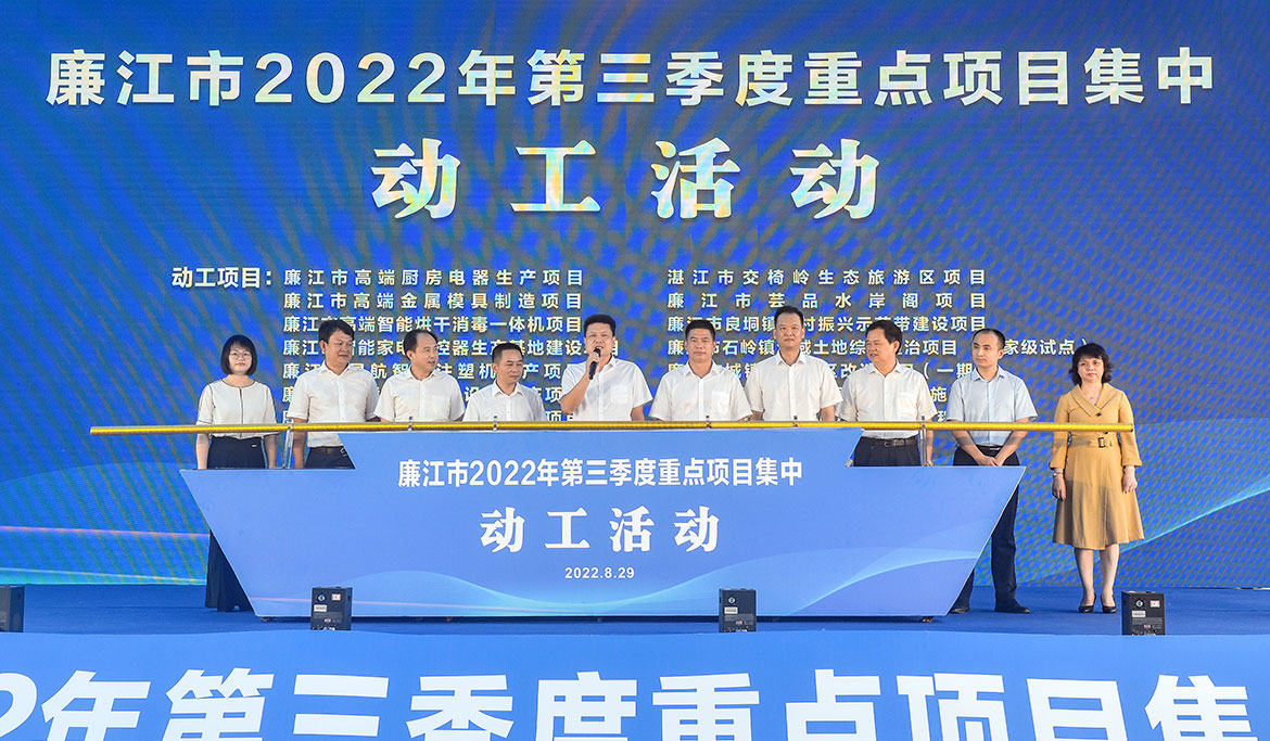 8月29日上午,我市舉行2022年第三季度重點(diǎn)項(xiàng)目集中動(dòng)工活動(dòng)。這批項(xiàng)目的動(dòng)工建設(shè),既是廉江市招商引資成果的一次集中展示,也是搶抓第三季度施工建設(shè)黃金期的一次動(dòng)員號(hào)令,為廉江高質(zhì)量發(fā)展注入更強(qiáng)勁的動(dòng)力。