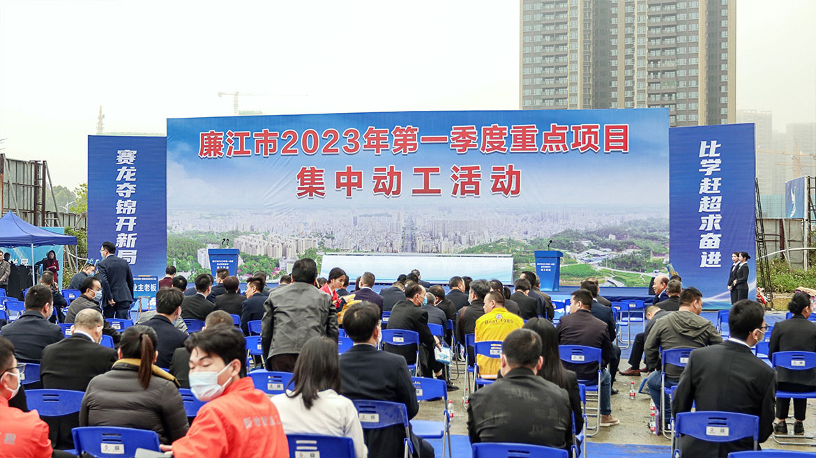 3月29日上午,廉江市2023年第一季度重點項目目集中動工活動如期舉行,11個重點項目集中動工,總投資18.41億元,以風(fēng)雨無阻的奮斗姿態(tài),吹響項目建設(shè)的“沖鋒號”,點燃跨越式、高質(zhì)量發(fā)展的“強引擎”。