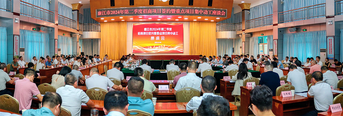 陳恩才、柯俊、陳煒飛、吳永光等廉江市四套班子領(lǐng)導(dǎo),各鎮(zhèn)(街道)黨政主要負(fù)責(zé)人,市直(駐廉)有關(guān)單位(專班),招商項目簽約企業(yè)代表及重點動工項目業(yè)主單位及施工單位代表出席座談會。會議由柯俊主持。