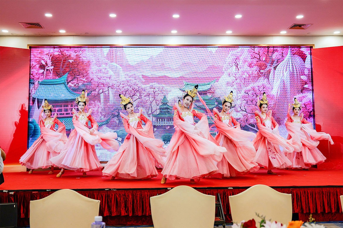 晚宴開場舞《盛世廉江》拉開了晚宴的序幕,新一屆理事會領(lǐng)導(dǎo)班子祝酒答謝,部分兄弟商會還送上紀(jì)念品及祝福;《早安廉江》、《和諧大家庭》、《輝煌綻放》、抽獎互動等十多個節(jié)目表演,為晚宴營造了豐富的氛圍。
