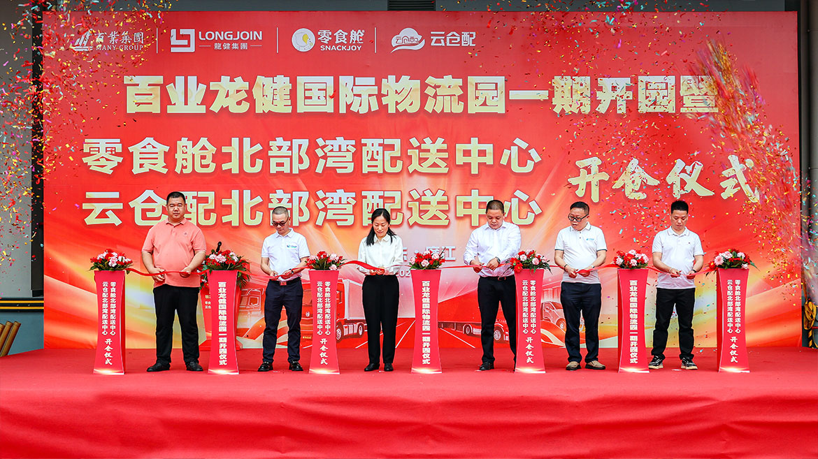 活動啟動儀式上,湛江市商務(wù)局黨組成員、副局長王艷,廉江市副市長謝偉清,廉江市工商業(yè)聯(lián)合會主席、市總商會會長、龍健集團(tuán)董事局主席陳逸,湛江市百業(yè)龍健國際物流有限公司董事長程越,零食艙品牌聯(lián)合創(chuàng)始人丁陳生,云倉配供應(yīng)鏈管理(廈門)有限公司副總經(jīng)理江勇平等領(lǐng)導(dǎo)、嘉賓一起為物流園開園和“零食艙、云倉配”北部灣配送中心開倉剪彩。