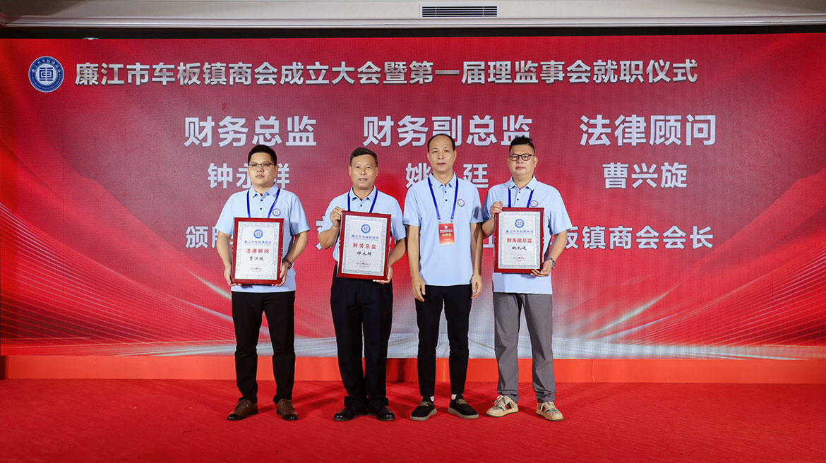 活動(dòng)中,與會(huì)領(lǐng)導(dǎo)為車板鎮(zhèn)商會(huì)會(huì)長(zhǎng)劉敬群,顧問陳錫亮、曹文忠,監(jiān)事長(zhǎng)譚永才等人員頒發(fā)當(dāng)選牌匾。