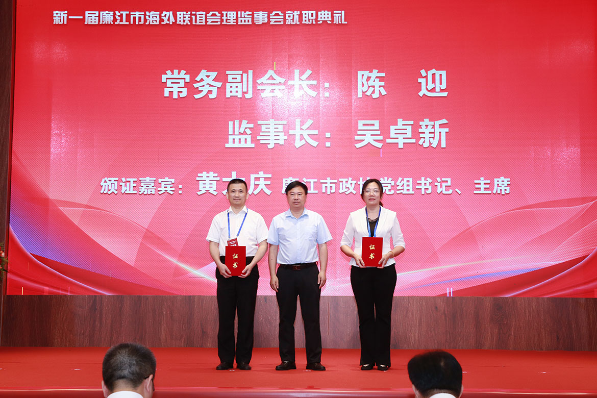 湛江市委統(tǒng)戰(zhàn)部常務(wù)副部長(zhǎng)黃昌旺,廉江市委書記曾平治,市人大常委會(huì)黨組書記、主任陳煒飛,市政協(xié)黨組書記、主席黃大慶等領(lǐng)導(dǎo)及嘉賓出席了就職典禮。